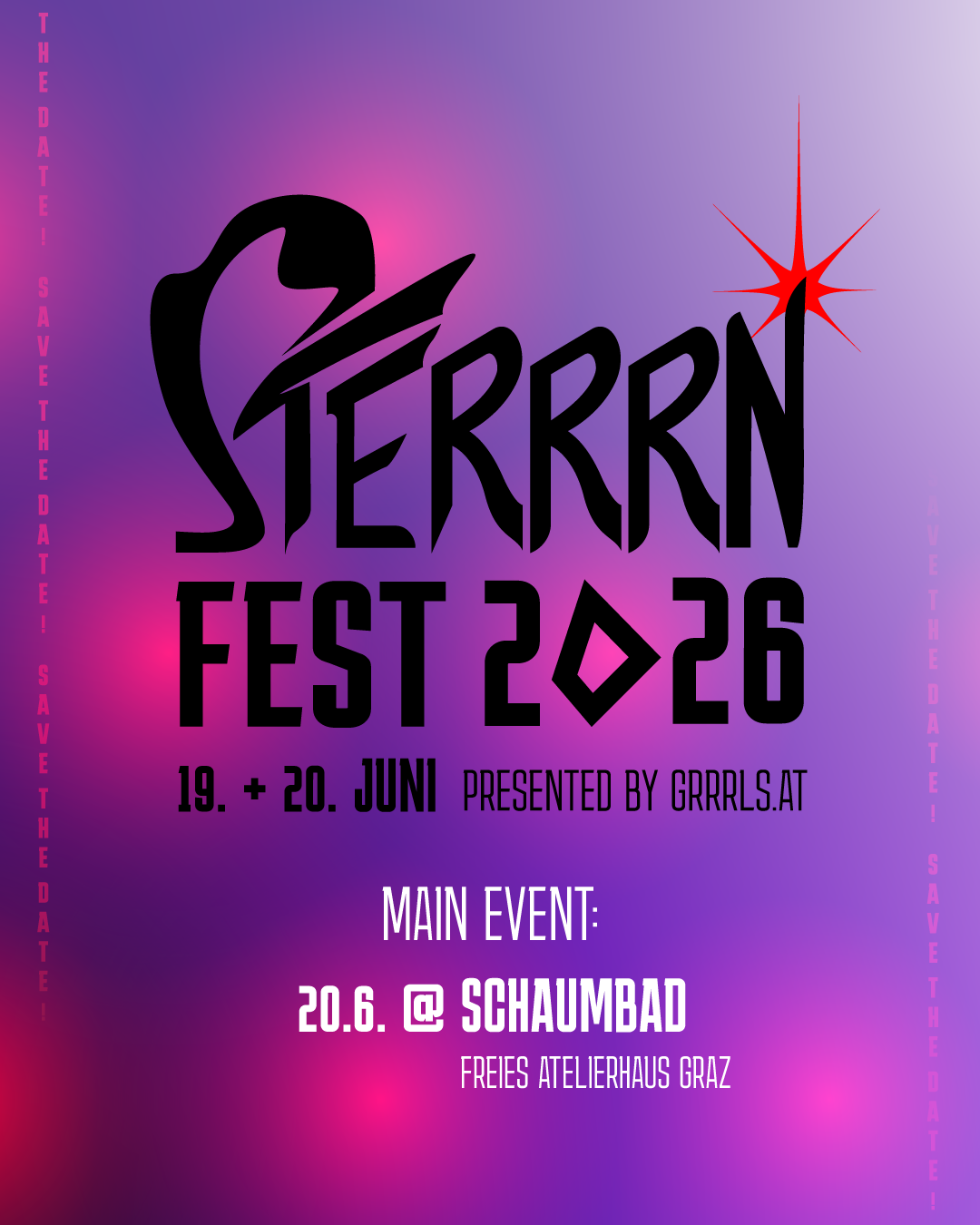 Das erste österreichische “FINTA*-Booked Multidisciplinary Music Festival” dient der Strategiesuche zum Vorantreiben des Systemwandels und Paradigmenwechsels im Kunstbusiness. Das STERRRN fest soll sich zudem als Role Model in der Gleichstellung für FINTA* Personen im Musikbusiness nachhaltig etablieren. Den Besucher*innen, die kostenfreien Zugang genießen, werden multisensorische Erfahrungen zur Reflexion inklusiver Ansätze geboten.